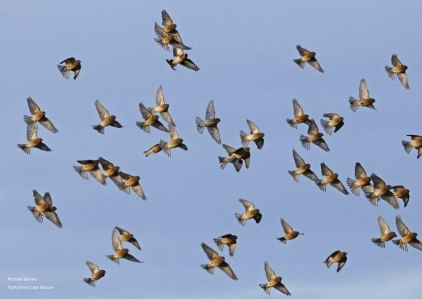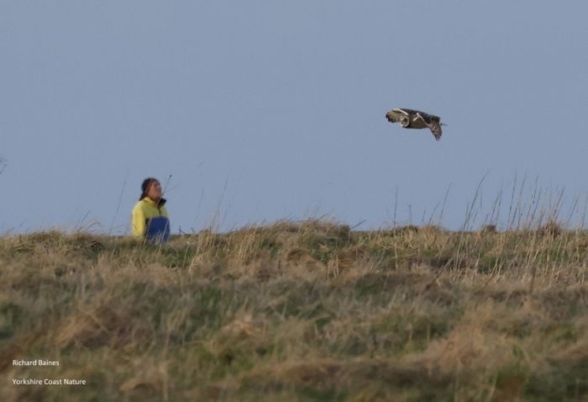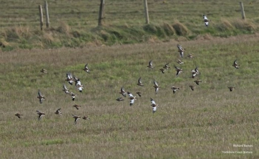 This tight flock was in contrast to the large scattered group of Eurasian Skylarks in the same field. In amongst the larks were six Lapland Buntings and at least 30 Yellowhammers. In the next field, two small bushes were stuffed with Corn Buntings, I counted 62 on a quick tally. Further east near Thornwick Bay two Shore Larks which had been wintering in the area showed well alongside a small number of Skylarks.