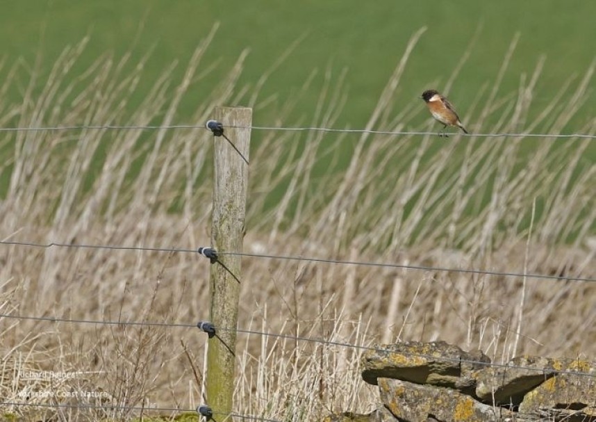 The land to the south-west of Cold Kirby which lies adjacent to the Cleveland Way is dominated by arable farming with smaller fields of grassland. A small number of Curlews can be found nesting here during the spring. On this morning, we were delighted to hear our first Curlew song of the year. An early territorial male putting his stamp on the area before any competitors arrive. After listening to the Curlew song, we followed the trail past several horse paddocks where a male Stonechat was making use of the many fences to perch and hunt in the rough grassland. Looking back towards Cold Kirby I counted six Common Buzzards and a single Red Kite.