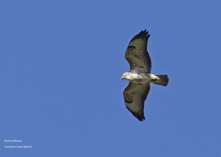 Pondering on the spring and marvelling at the view was not going to get us to Kepwick so we had to get our skates on. It was time to walk north. From Sutton Bank, the Cleveland Way follows the edge of the western escarpment of the North York Moors National Park. The lengthening day encouraged more birds of prey to soar above the woods below us. Among the buzzards was one distinctly pale bird. These pale morph Common Buzzards are frequent and can often be seen alongside the ‘normal’ plumage birds. On first view I thought it was a different species, only to realise I had been fooled again.